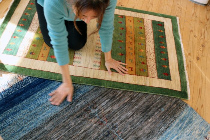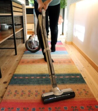 羊毛の絨毯には空気中のほこりやハウスダストを吸い付ける効果もありますので、ご自宅での管理は掃除機をかけるだけで大丈夫です!房のあるタイプの場合はロボット掃除機を使用すると、絡みつくことがありますので注意が必要です。
