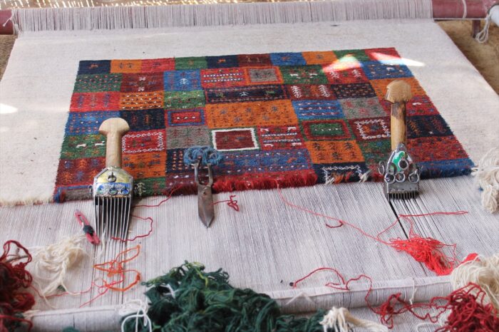羊の毛の繊維が長く柔らかいザクロス種で、ペルシャ絨毯とは違った素朴な風合いが魅力です。カシュガイ族伝統の「イラン南西部・ファールス州の絨毯織り技術」は2010年ユネスコ世界無形文化遺産にも認定されます。