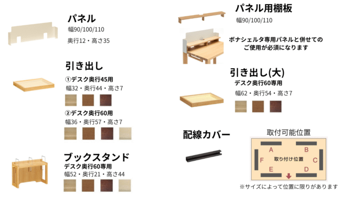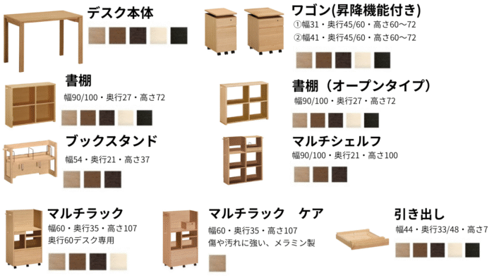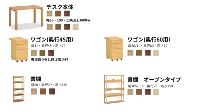 どのモデルも、オプションやサイズ違いのデスクと併用することで、お客様のご希望に沿った使い方が可能です。
