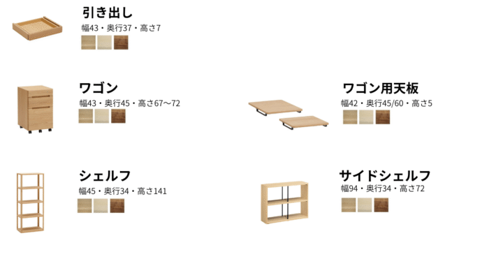 また、別売りのマグネットパネルや引き出し、ツールトレイを組み合わせることで、機能性をさらに高めてくれます。