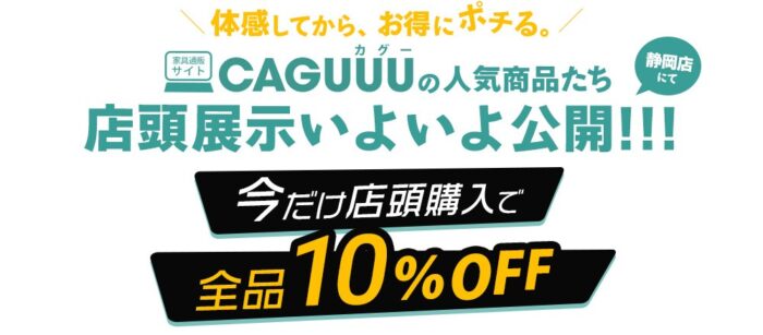 【オープン記念!店頭購入で10%OFF】CAGUUU(カグー)店頭展示、いよいよ静岡店で公開