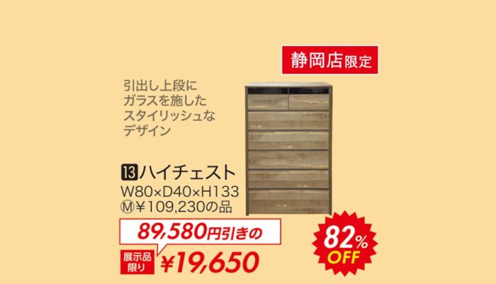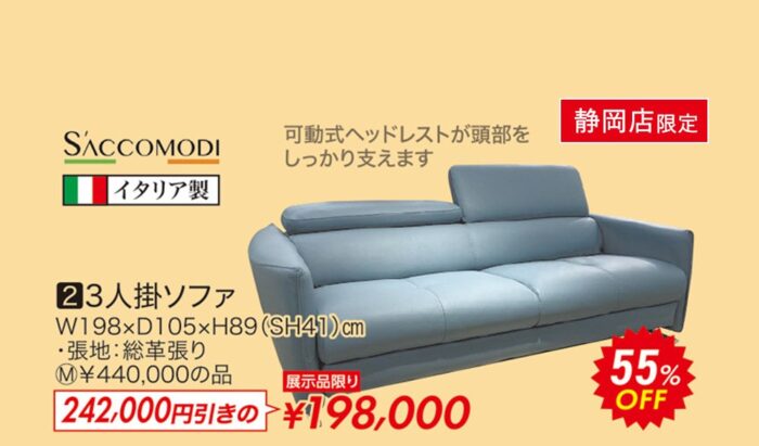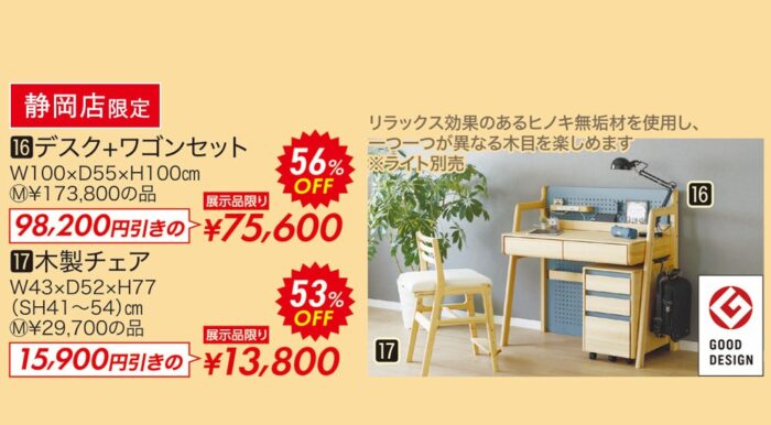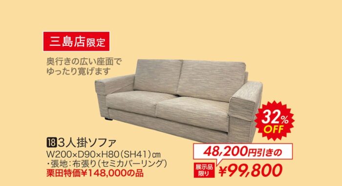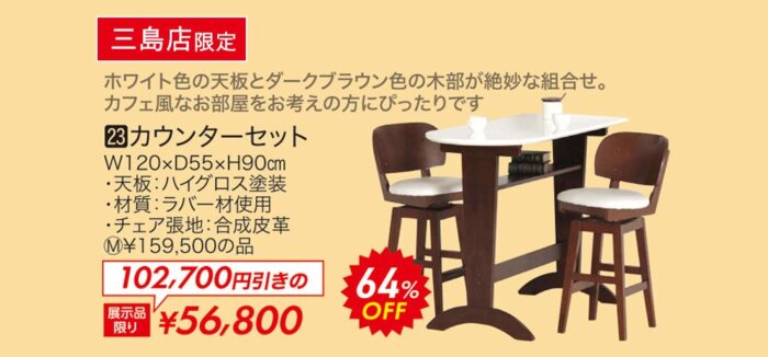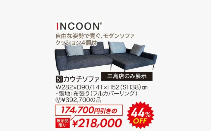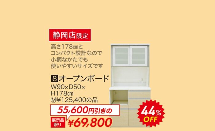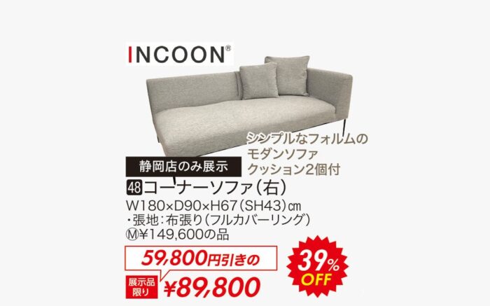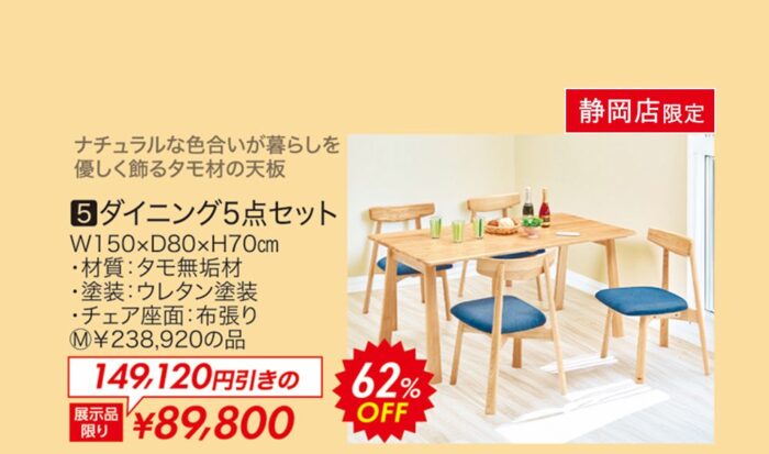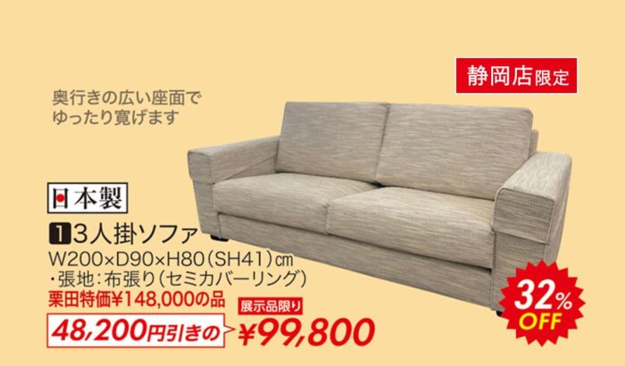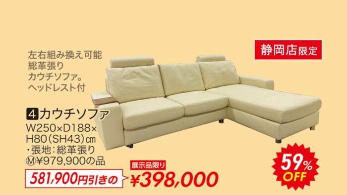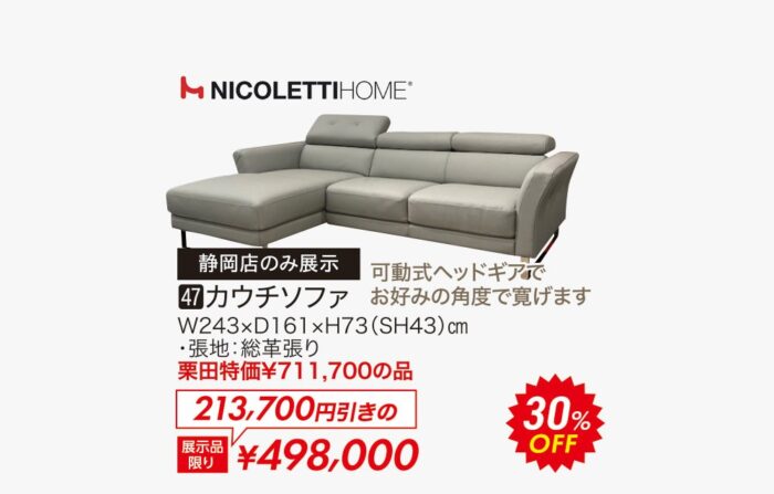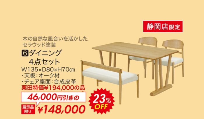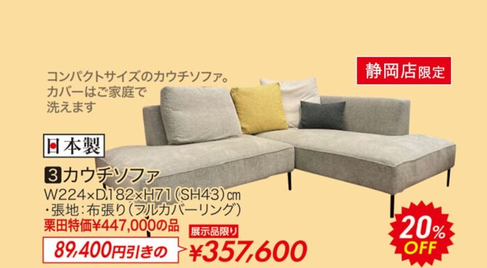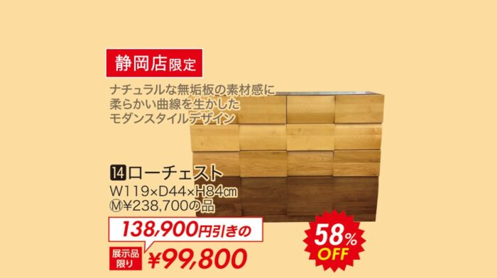✔ ブランド家具も展示入れ替え商品は、最低20%OFF以上!