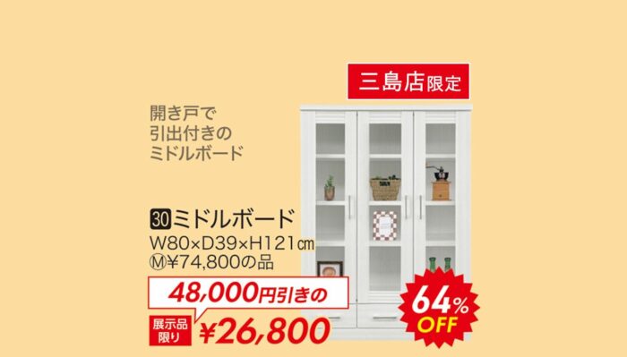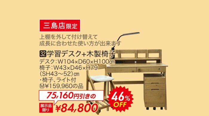 ✔ 店内展示リフレッシュのため、展示現品がお買い得!