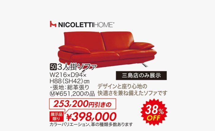 ブランド家具展示入れ替え商品最低20%OFF以上