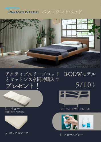 テンピュール素材を使用した無重力体感のテンピュールベッドと介護医療現場でも大活躍のパラマウントベッドのプレゼントキャンペーンを開催。
