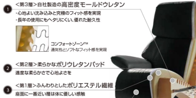 座面は座り心地と耐久性を追求・両立した3層構造。